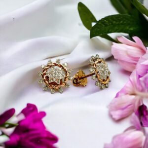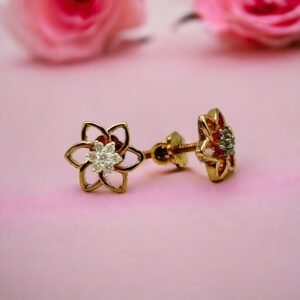 Floral Design Gold & Diamond Earrings For Women