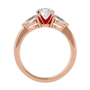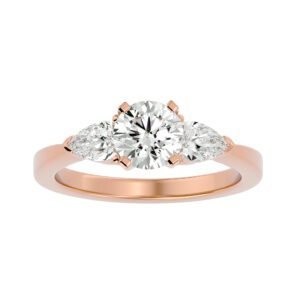 A round and pear-shaped solitaire ring is a captivating blend of classic and unique diamond cuts. The centerpiece of the ring is a round-cut diamond, renowned for its timeless ...