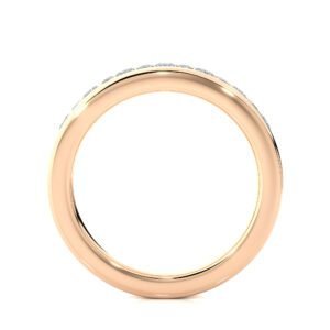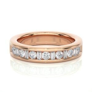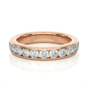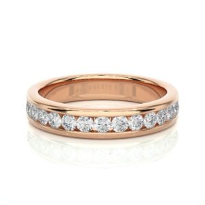 A round-shaped diamond channel setting band is a classic and elegant piece of jewelry that combines timeless design with modern sophistication. This band features a series of round diamonds, ...
